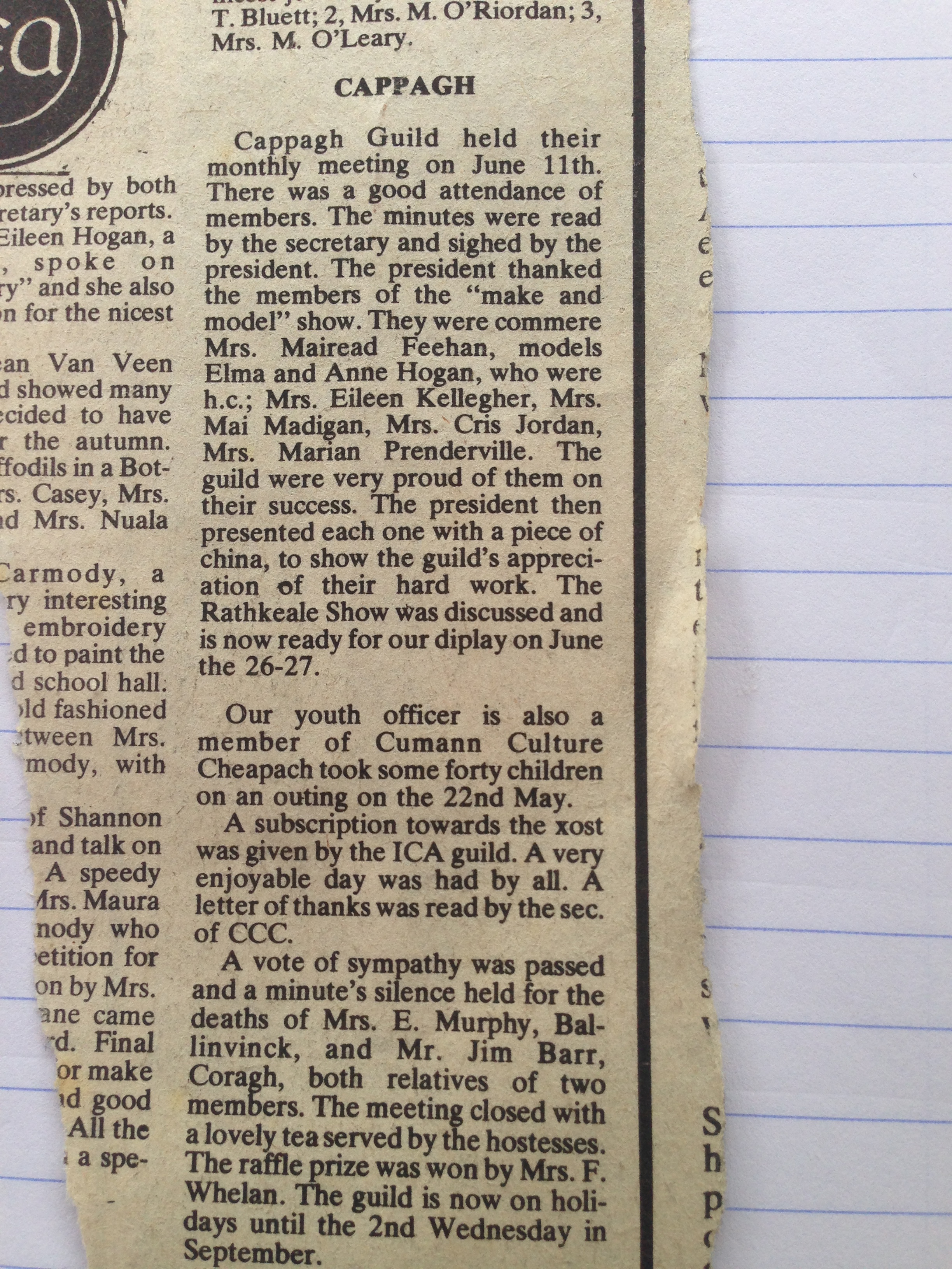 Eithne Moran (daughter of Chrissy Moran nee Sheehy Kilbeha)